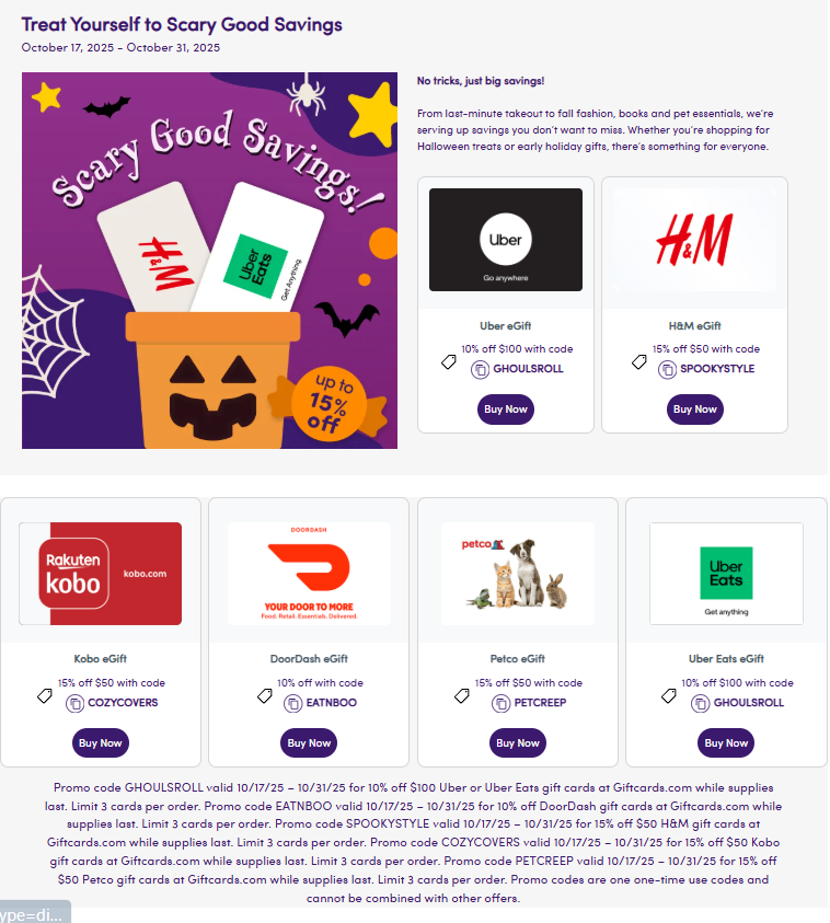 - H&M eGift 15% off $50 with code SPOOKYSTYLE