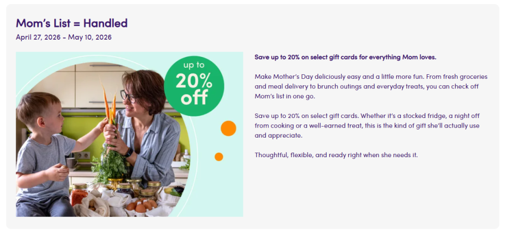 2 Comments on “Giftcards.com: 20% Off $100 Wayfair Gift Cards | 10% Off InstaCart, DoorDash and inKind Gift Cards”