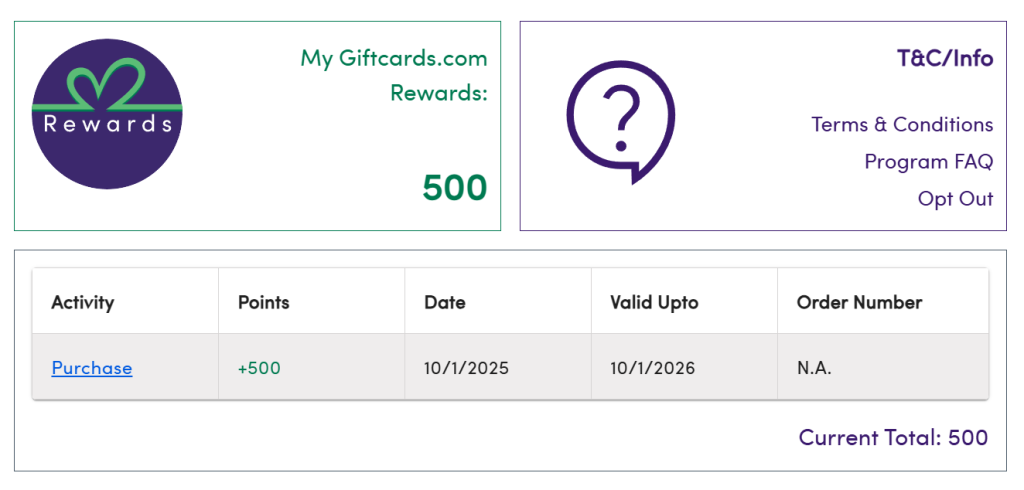 Giftcards.com Rewards Program