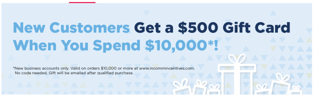 - Valid on orders $10,000 or more at www.incommincentives.com