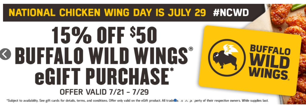 Save $7.50 off a $50 Buffalo Wild Wings® eGift Card