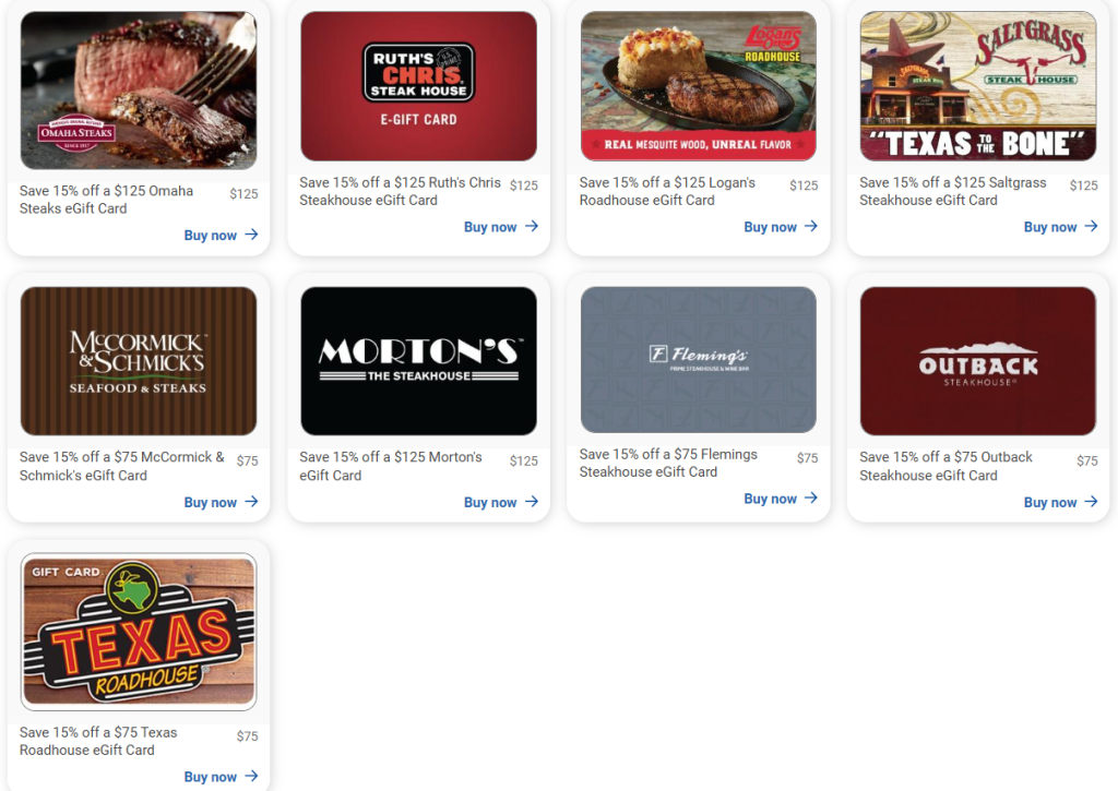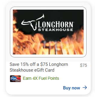 One Comment on “[EXPIRED] Kroger (Online): 15% Off Morton’s, Omaha Steaks, Ruth’s Chris Steakhouse, Logan’s Roadhouse, Saltgrass Steakhouse, McCormick & Schmick’s, Flemings Steakhouse, Outback Steakhouse, Texas Roadhouse Gift Cards (Updated)”