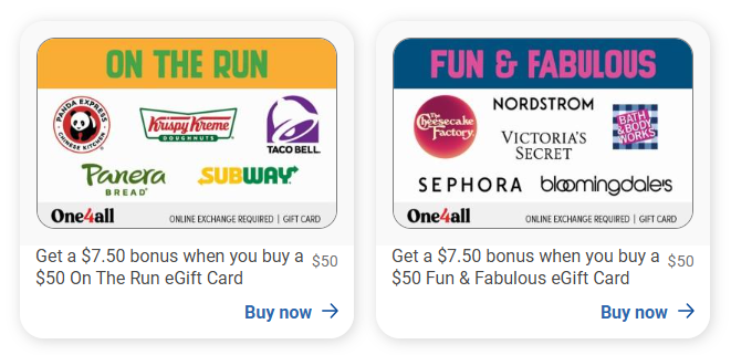 - Get a $7.50 bonus when you buy a $50 On The Run eGift Card
