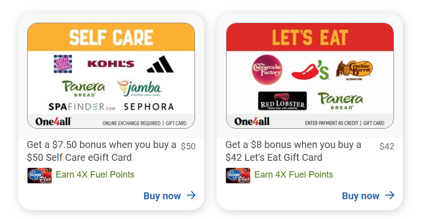 Stack with the current 4x Fuel Points offer on all third party gift cards until April 21st.