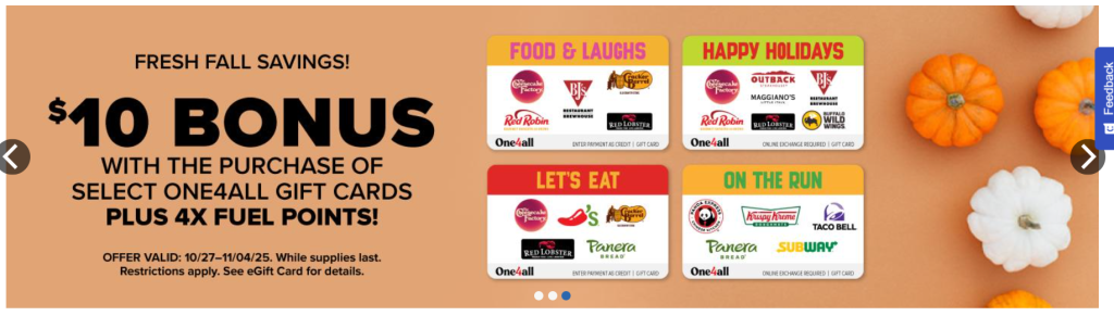 Stack with the current 4x Fuel Points offer on all third party gift cards.