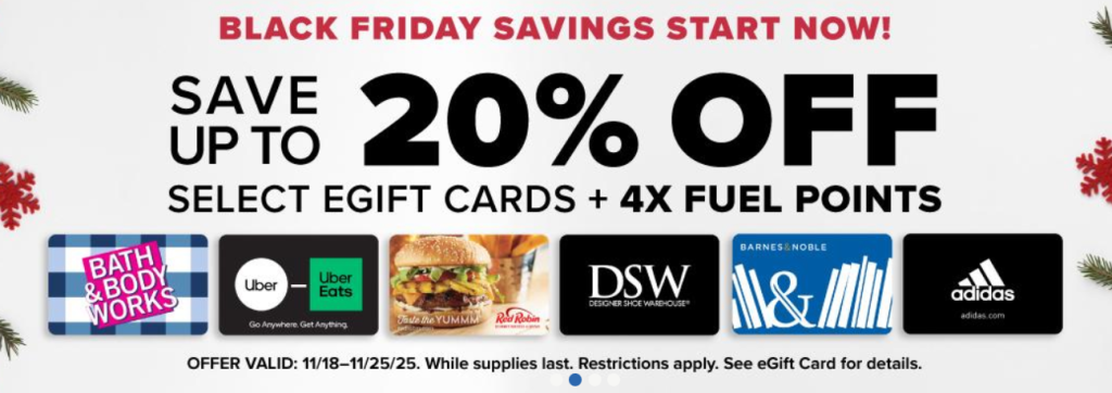 Stack with the current 4x Fuel Points On All Third Party Gift Cards.