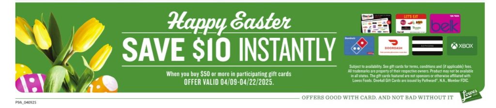 Great deal on One4All gift cards if you do your grocery shopping at Lowes Foods. Although not pictured, the conversion options should include brands such as Home Depot, Macy’s, Lowe’s, Staples and IKEA.