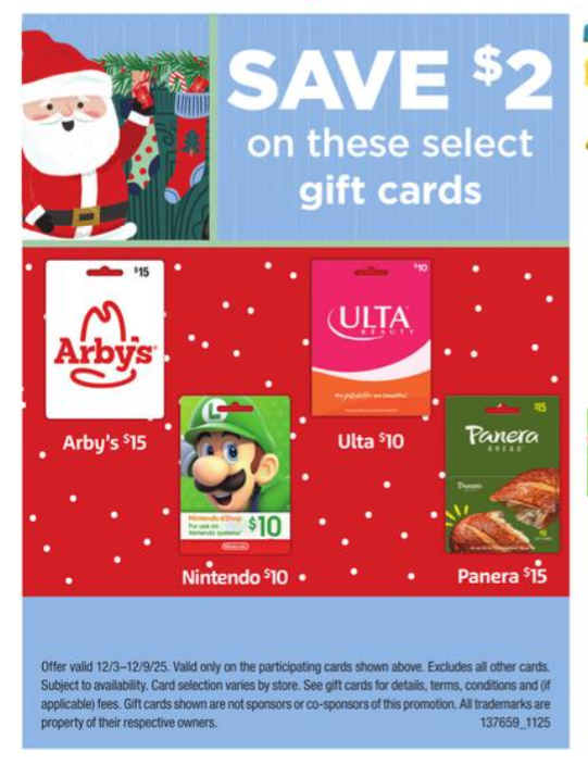 Works out to about 13.3% off Arby’s and Panera Bread gift cards and 20% off on Nintendo and Ulta Beauty gift cards. Appears to be unlimited.