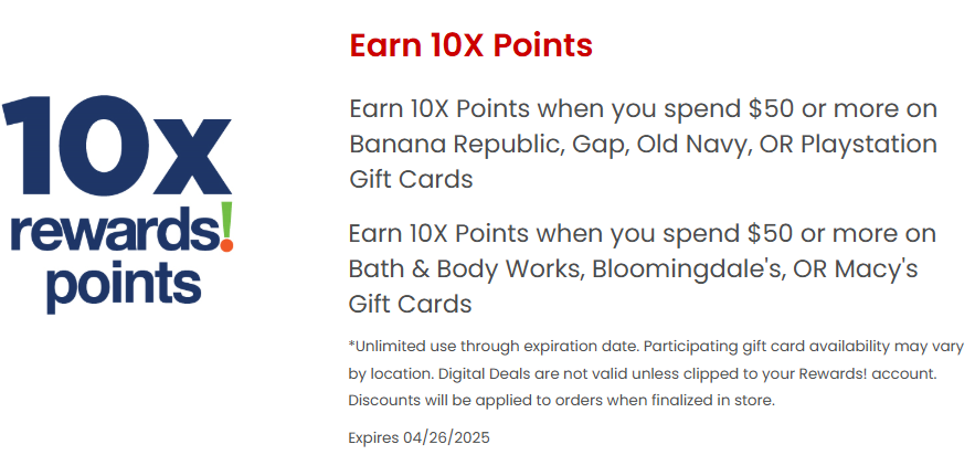 [EXPIRED] Market Street: Earn 10X Points on $50 Gap Brands, PlayStation, Bath & Body Works, Bloomingdale’s and Macy’s Gift Cards