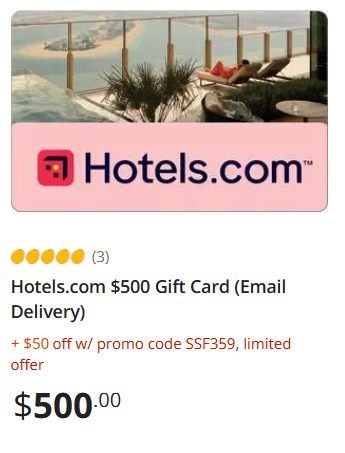 $50 off Hotels.com $500 Gift Card (Email Delivery) with promo code: SSF359