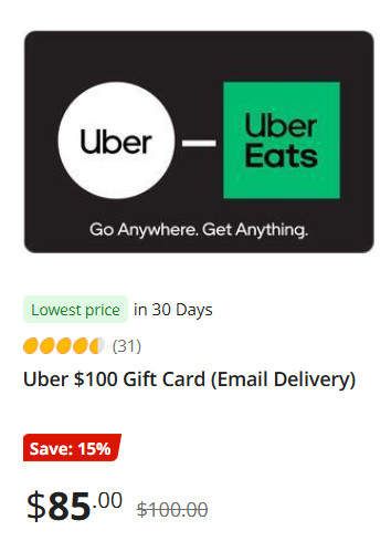 15% off at checkout on Uber $100 Gift Card (Email Delivery) at Newegg
