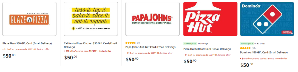 - Pizza Hut $50 Gift Card (Email Delivery) promo code:SSET101