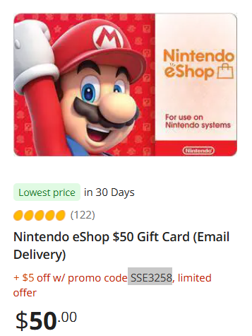 Get $5 off at checkout on Nintendo $50 gift card at Newegg using promo code BFEFE46