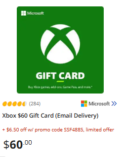 Get $6.50 off at checkout on Xbox $60 Gift Card at Newegg with promo code SSF4885