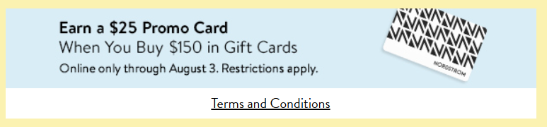 Earn a $25 promo card when you buy $150 in Nordstrom gift cards at Nordstrom.com