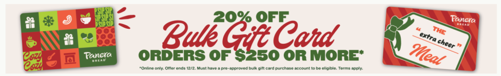 20% Off $250 or more Panera Bread bulk gift card purchase