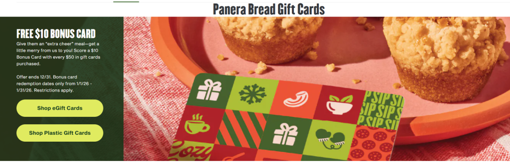 PaneraBread.com: Get $10 Bonus Card for Every $50 in Panera Bread Gift Cards Purchased | 10% Off $500 Panera Bread Bulk Gift Card Purchase