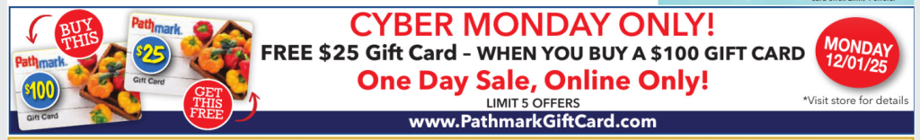 Free $25 gift card when you buy a $100 gift card.