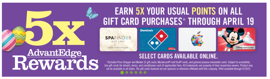 Price Chopper: Earn 5X AdvantEdge Rewards on select gift cards available online