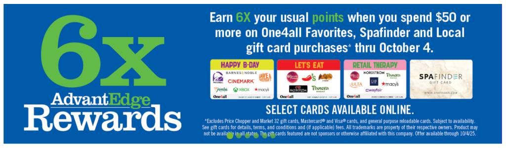 Price Chopper: Earn 6X AdvantEdge Rewards on select gift card purchases: