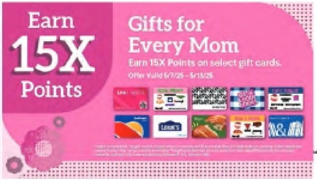 Earn 15X Points on select gift cards, including: