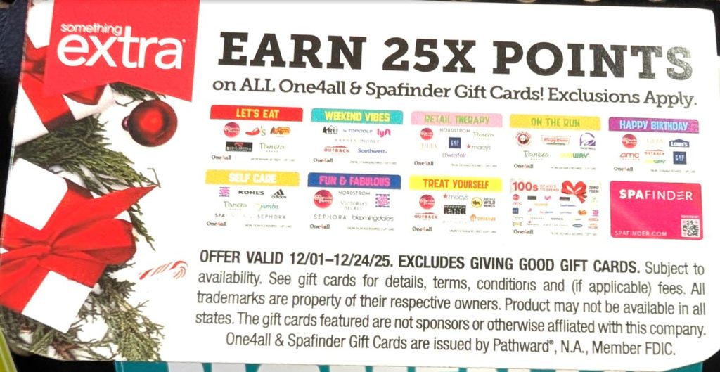 Earn 25X Points on One4All and Spafinder gift cards at Raley’s/Bel Air/Nob Hill Foods