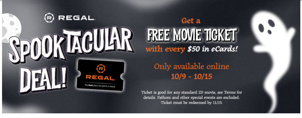 Get a free movie ticket with every $50 in eCards! Ticket is good for any standard 2D movie.