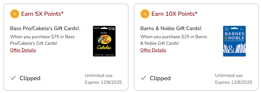 - Earn 10X on $25 Barnes & Noble Gift Cards
