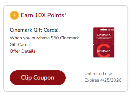 - exp March 21, 2026 (10x points on $50)