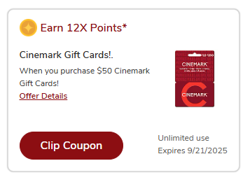 Earn 12X points on the following gift cards: