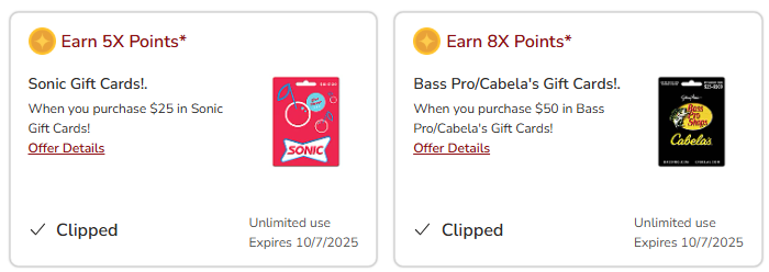 Earn 8X Points on $50 Bass Pro Shops/Cabela’s gift cards