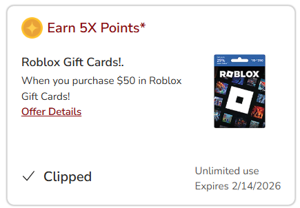 Safeway/Albertsons/Vons/Jewel-Osco/ACME: Earn 5x Points on Roblox Gift Cards