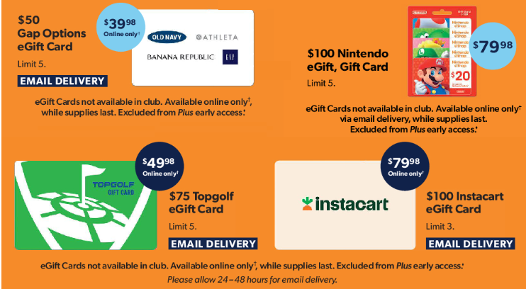 [EXPIRED] Sam’s Club (Online): 20% Off Gap, Instacart and Nintendo Gift Cards | 33% Off Topgolf Gift Cards