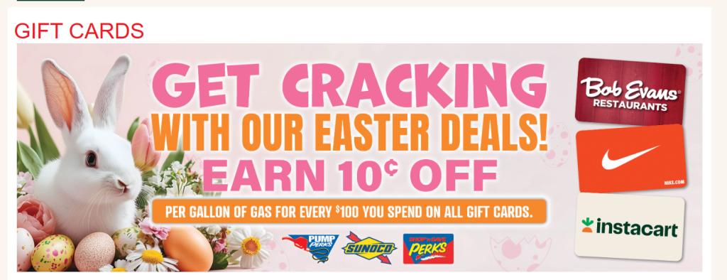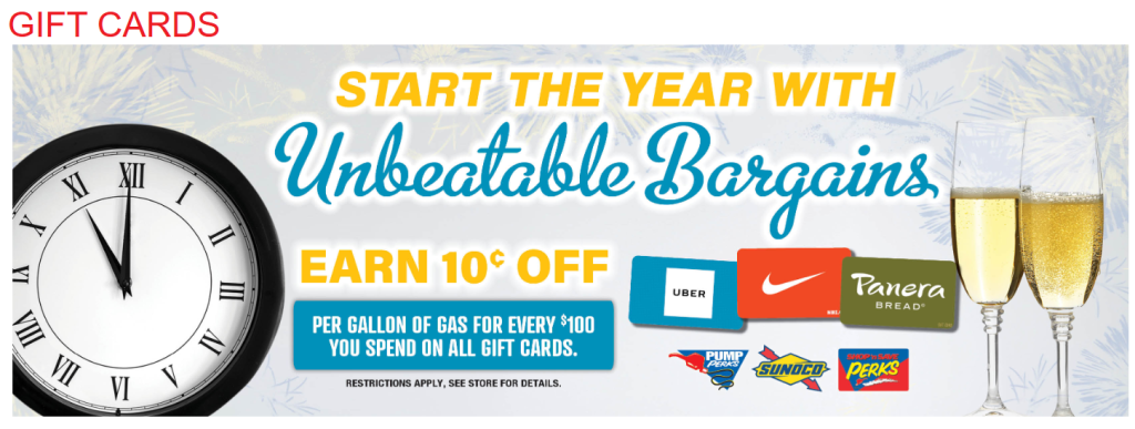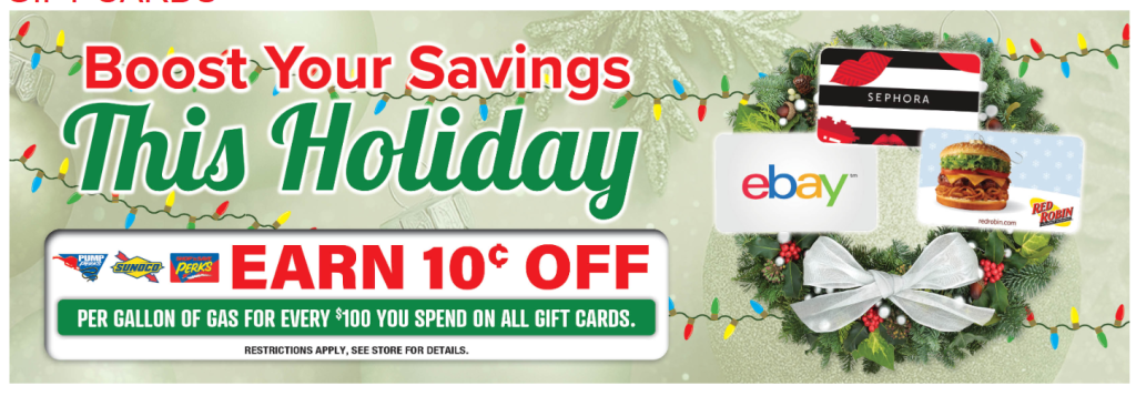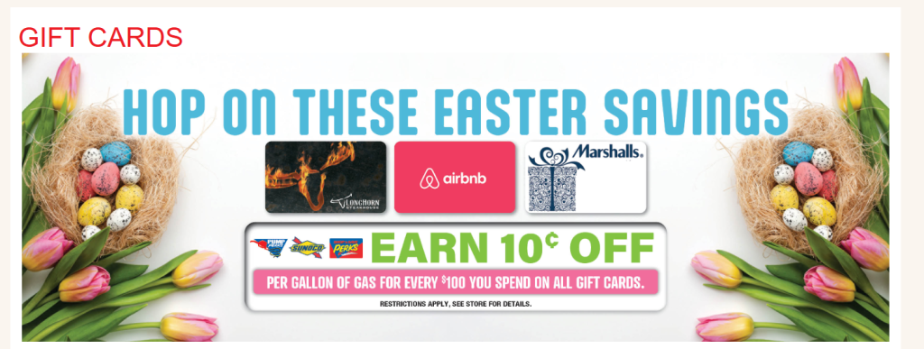 Earn 10c off per gallon for every $100 gift card purchase.