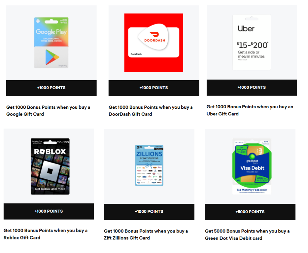 Speedway: Buy Roblox, Uber, Google Play, DoorDash and Zillions Gift Cards and Get 1000 Bonus Points