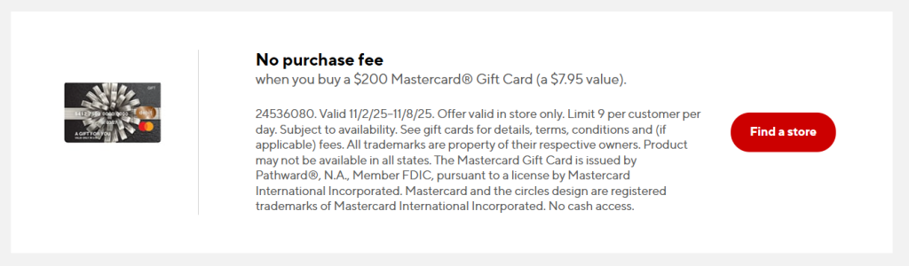 No purchase fee on $200 Mastercard gift cards at Staples stores (a $7.95 value)