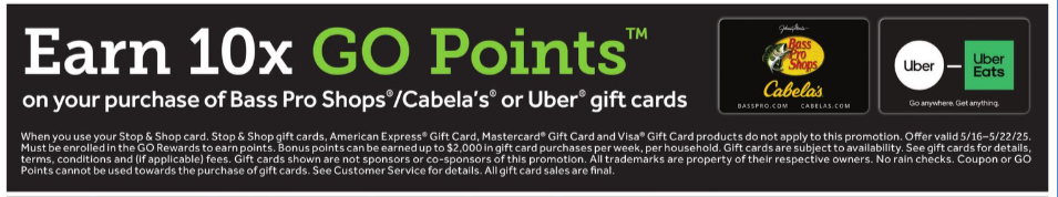 - Must use your Stop & Shop card with the purchase of gifts cards.
