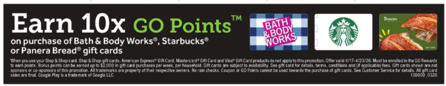 - Must use your Stop & Shop card with the purchase of gifts cards.