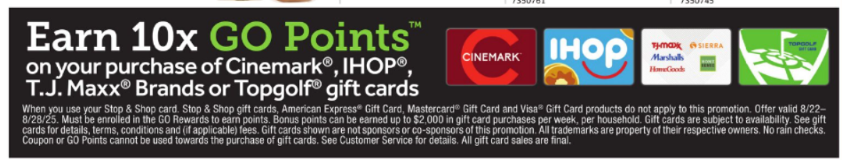 - Must use your Stop & Shop card with the purchase of gifts cards.