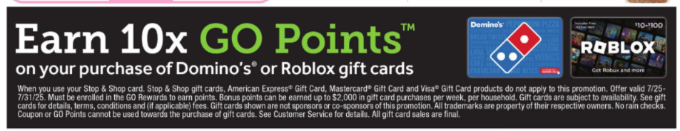 [EXPIRED] Stop & Shop: 10x GO Rewards Points on Domino’s and Roblox Gift Cards
