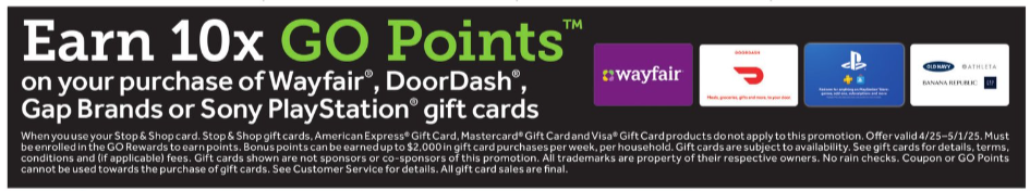 Earn 10x GO Rewards Points on the following gift cards: