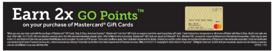 - Must use your Stop & Shop card with the purchase of gifts cards.