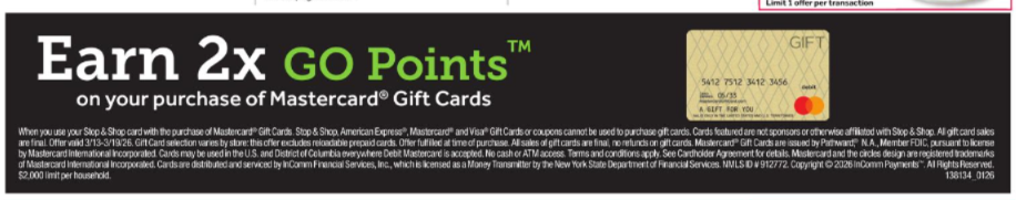 Earn 2x GO Rewards Points on the following gift cards: