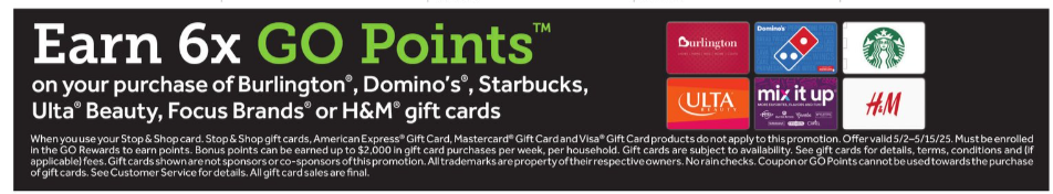 Earn 6x GO Rewards Points on the following gift cards: