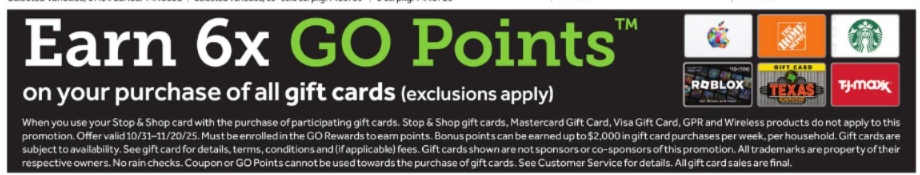 - Stop & Shop gift cards, Mastercard Gift Card, Visa Gift Card, GPR and Wireless products do not apply to this promotion