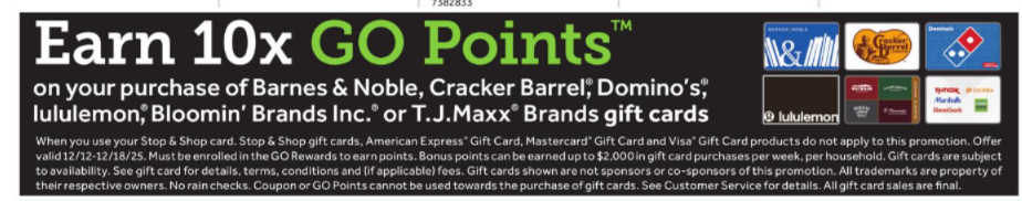 - Must use your Stop & Shop card with the purchase of gifts cards