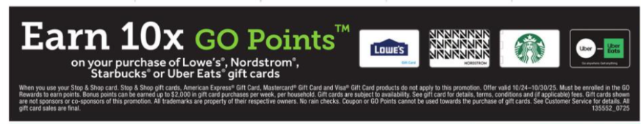 - Must use your Stop & Shop card with the purchase of gifts cards.