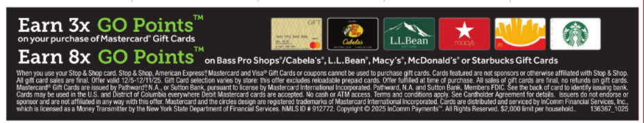 - Must use your Stop & Shop card with the purchase of gifts cards