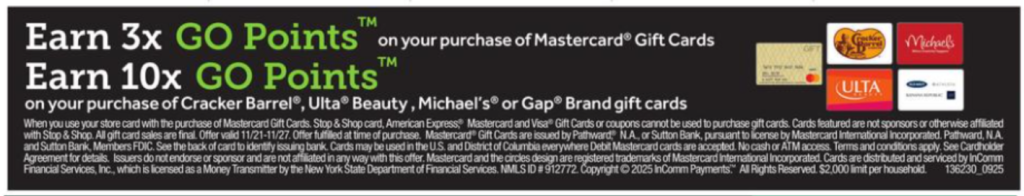 - Earn 3x GO Rewards Points on Mastercard Gift Cards
