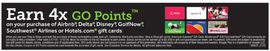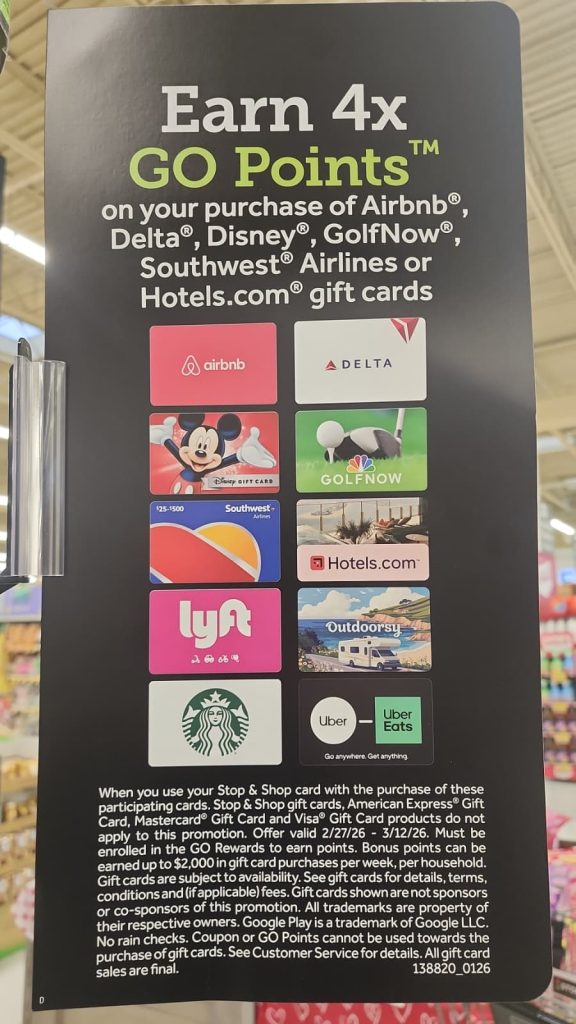 - Must use your Stop & Shop card with the purchase of gifts cards.